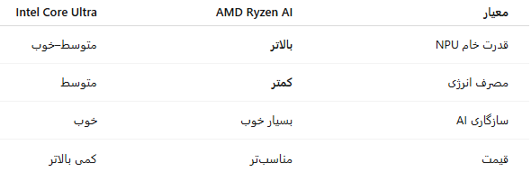 اگر استفاده شما به مدلهای AI، کارهای گرافیکی هوشمند یا پردازش تصویر وابسته است، Ryzen AI عملکرد روانتر و سریعتری ارائه میدهد.