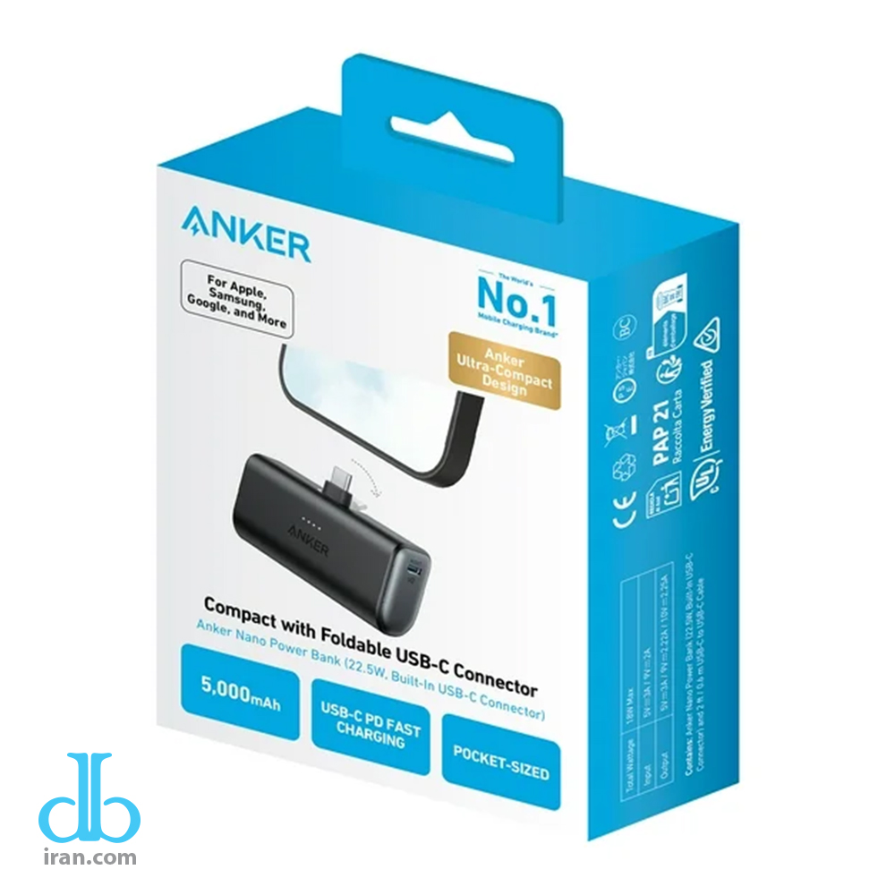 پاوربانک Anker Nano مدل A1653H11 با ظرفیت 5,000 میلی آمپرساعت و توان خروجی 22,5 وات ، راه حلی جمع و جور و فدرتمند برای تامین انرژی دستگاه همراه شماست.